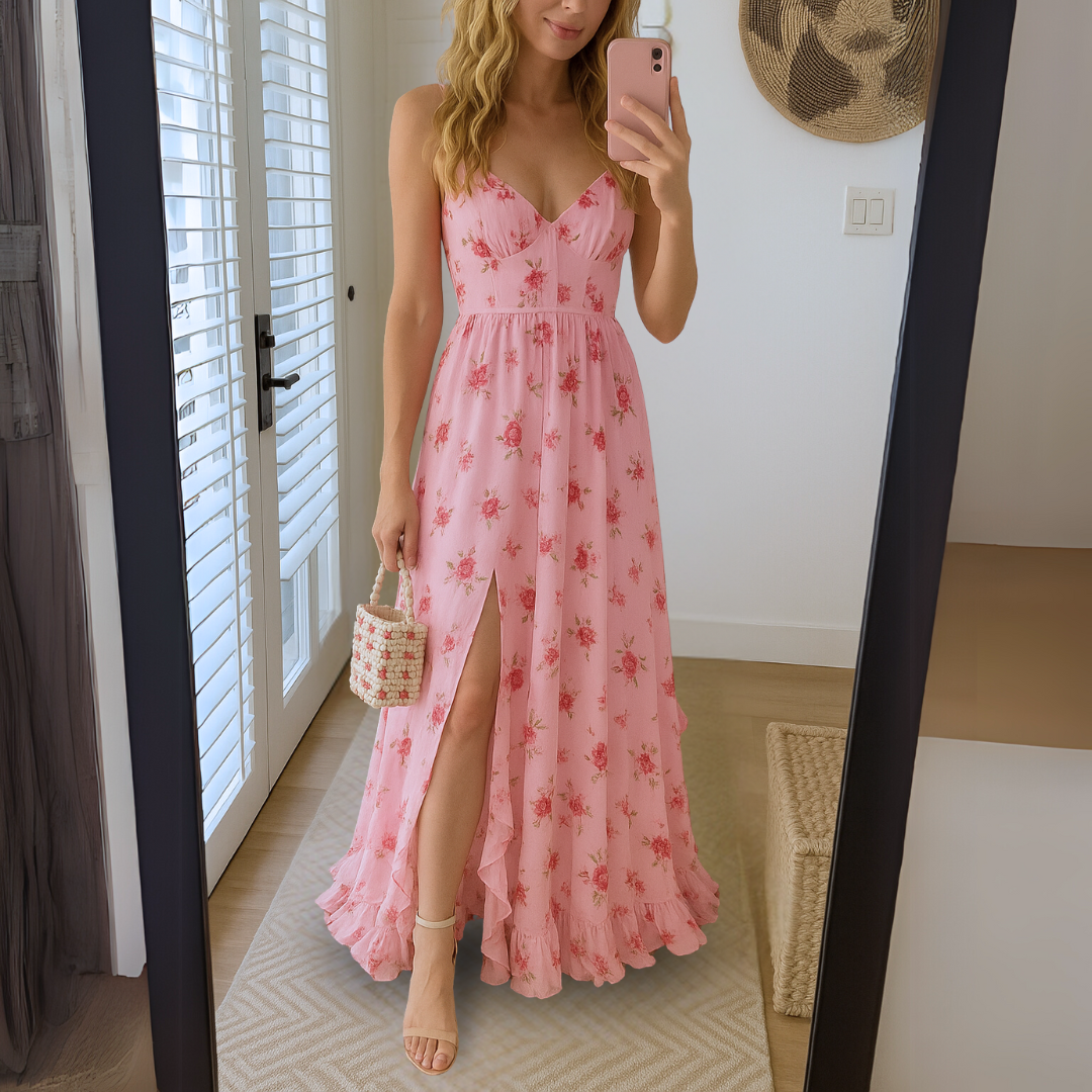 Laat je stijl bloeien met de Esmee™ lange gebloemde jurk!