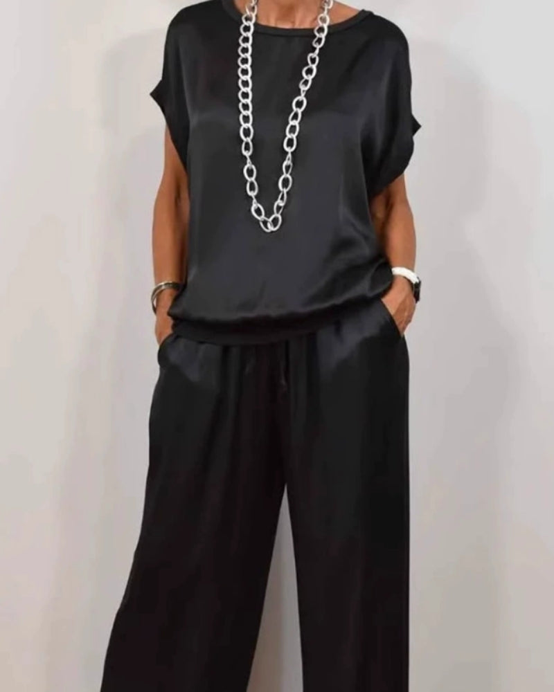 De verfijnde Lydia™ set combineert comfort en klasse in een tijdloos ontwerp. Met een luchtige pasvorm en een zijdeachtige uitstraling straalt deze set pure elegantie uit, zonder in te leveren op gemak. Verkrijgbaar in klassiek zwart of stijlvol écru, is Lydia™ dé keuze voor vrouwen die stijl en flexibiliteit waarderen – van casual momenten tot formele bijeenkomsten.