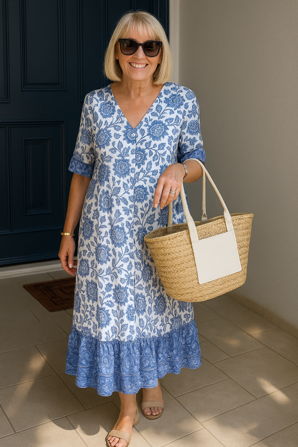 La robe aérienne Rita™ apporte une élégance bohème naturelle à votre garde-robe. Avec son délicat imprimé floral bleu lavande et sa coupe flatteuse, cette robe est une ode à la féminité naturelle. Idéale pour les journées ensoleillées, les promenades relaxantes sur la plage ou les soirées élégantes en terrasse, elle deviendra votre nouvelle favorite de l'été.